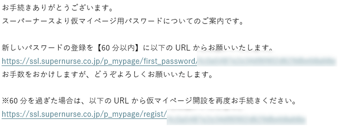 メール「仮マイページ用パスワード設定のお願い」本文中の