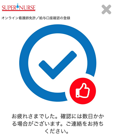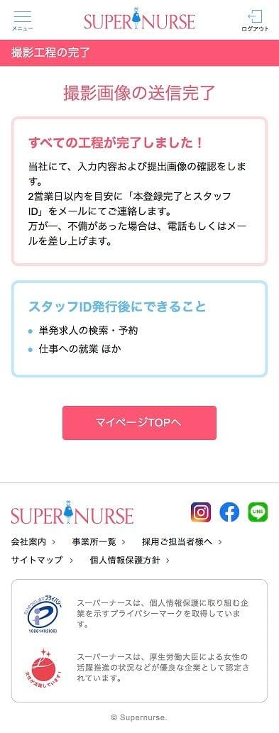 看護師免許証などの撮影をもってご登録のお手続きは完了です。